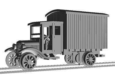 ゲージレールを走行可能な3Dプリント製のフォードTトラックです。ボディは一体成形で3Dプリント製の
